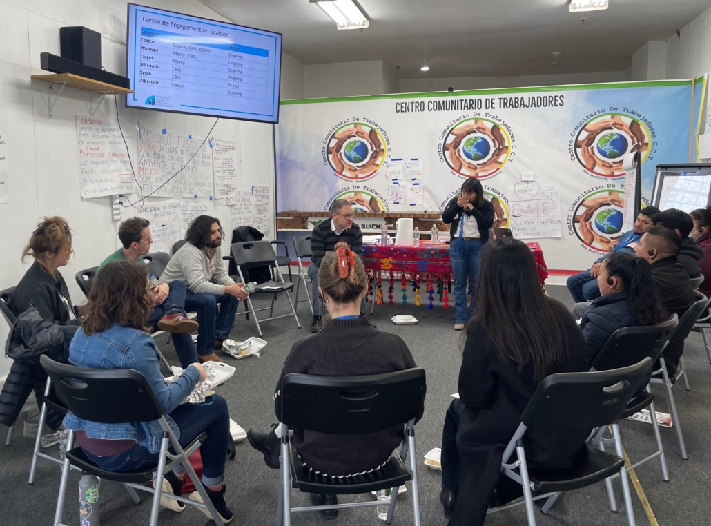 ICCR investors spoke about the role that investors can play in supporting worker rights initiatives and ARC spoke about its research on working conditions in the seafood sector. Finally, CCT members presented the Code of Conduct that they are asking companies in the Port of New Bedford to sign. Although investor members of ICCR’s equitable global supply chain working group have been focused on abuses in global seafood supply chains, many of the companies we are engaging also source from New Bedford. We will continue to explore ways to support CCT’s work.